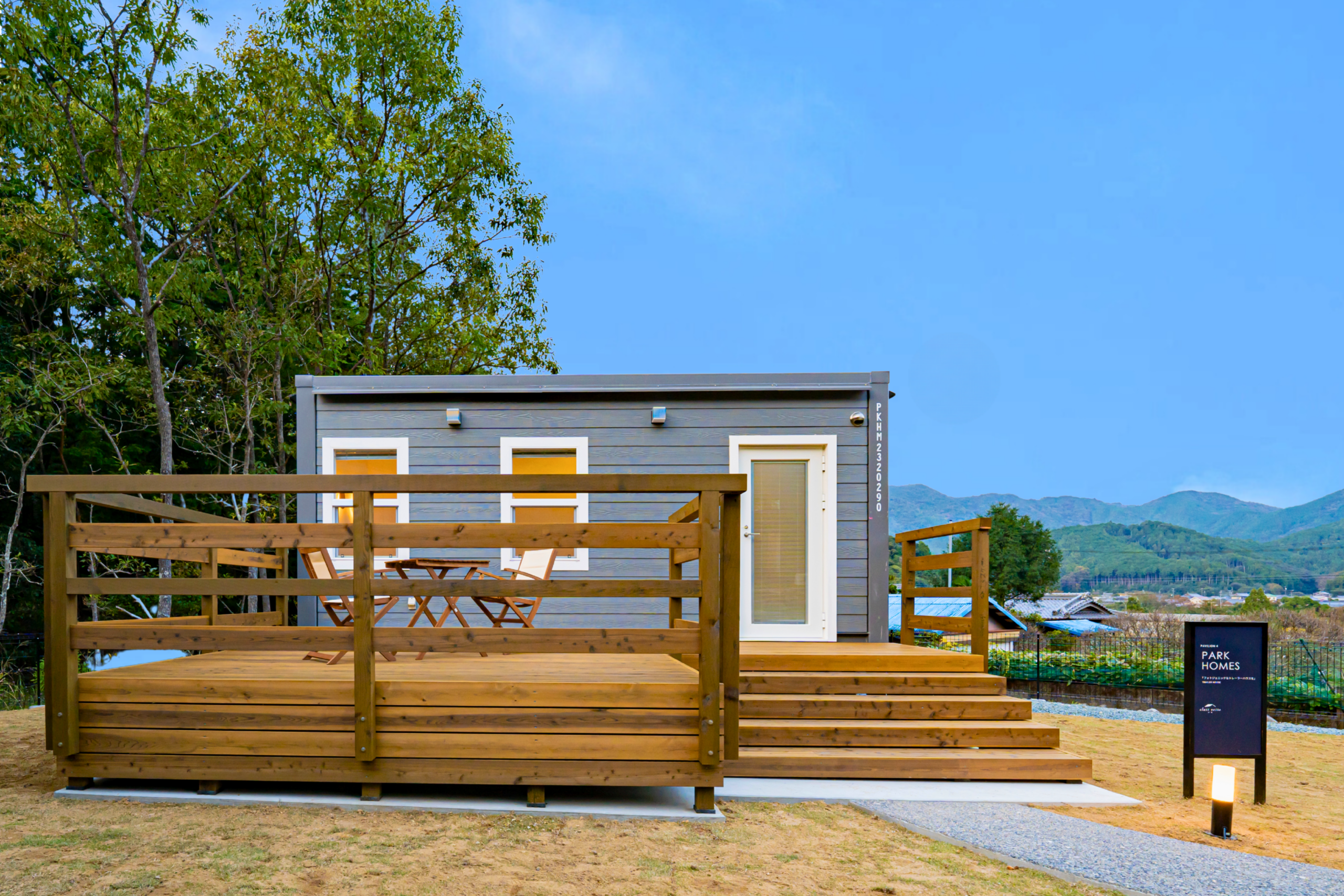 [ウッドデッキ付 トレーラーハウス]