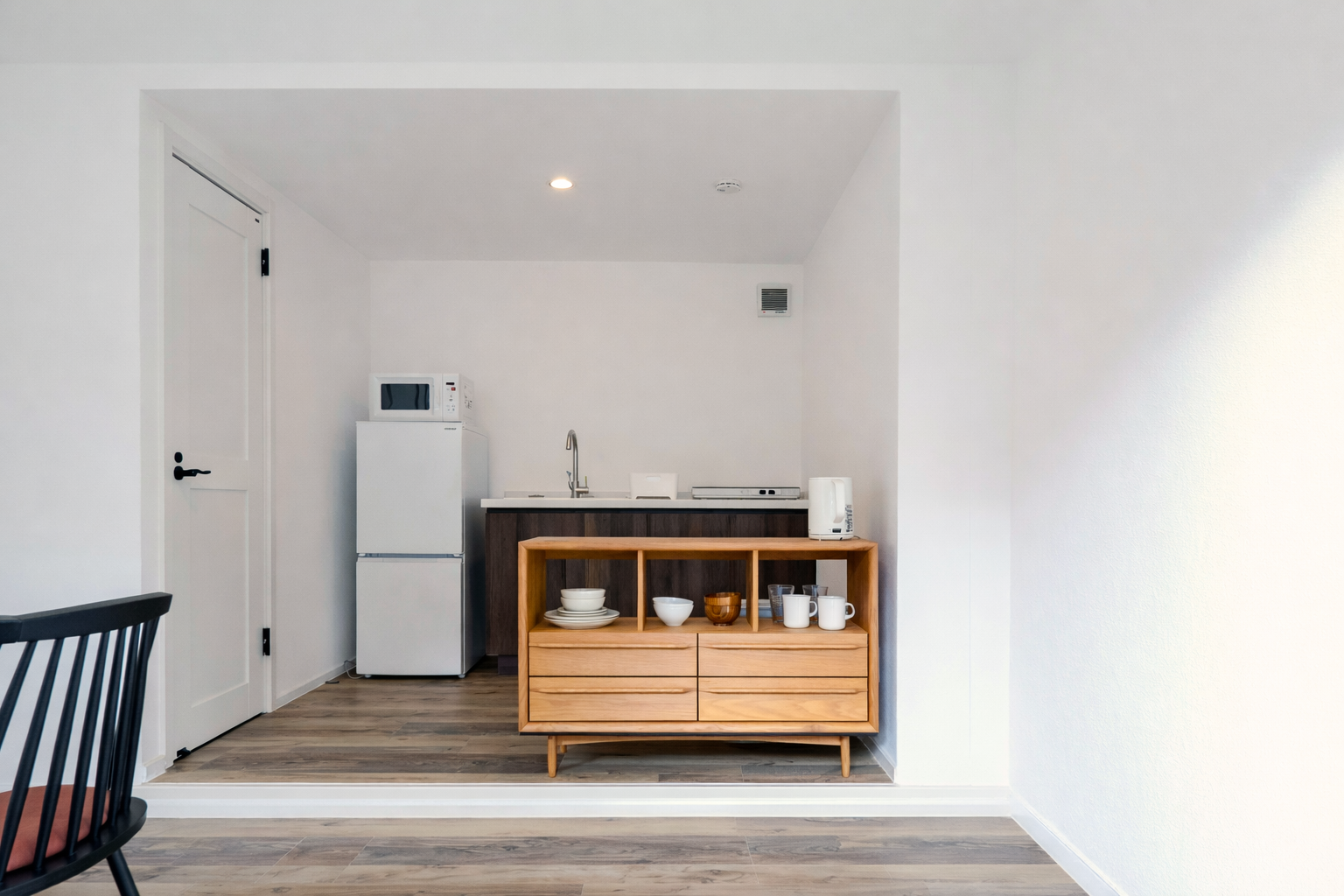 白く明るいインテリアがかわいいフォトジェニックな室内。
